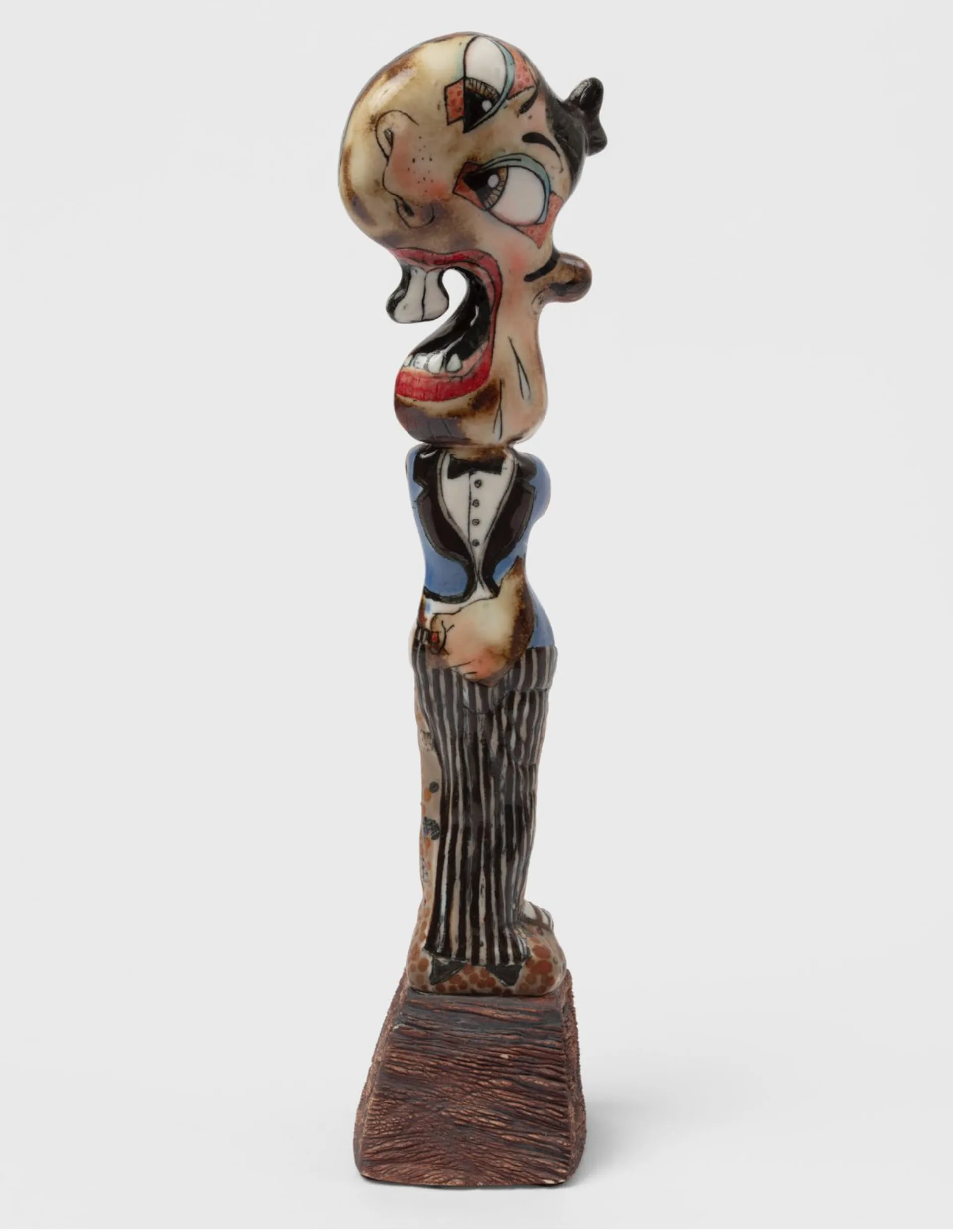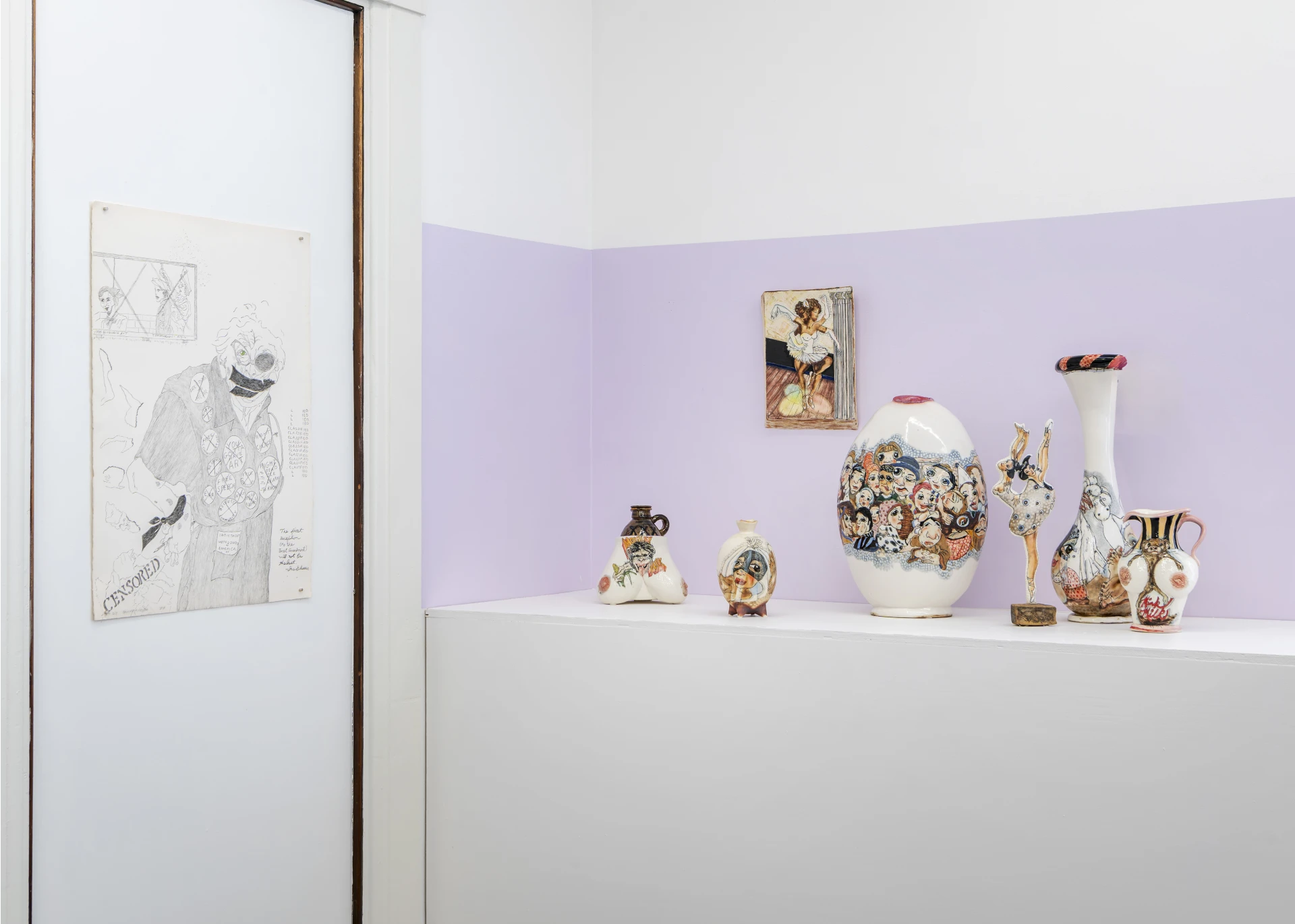 Like Layton, we also work from life—our lives, the systems we've wrestled with, the symbols that surround us. But instead of colored pencil, we use porcelain. Where Layton's drawings are intimate and spare, our sculptures are full, theatrical, and alive with contradiction. We mix softness with violence, the sacred with the absurd, protest with sensuality.