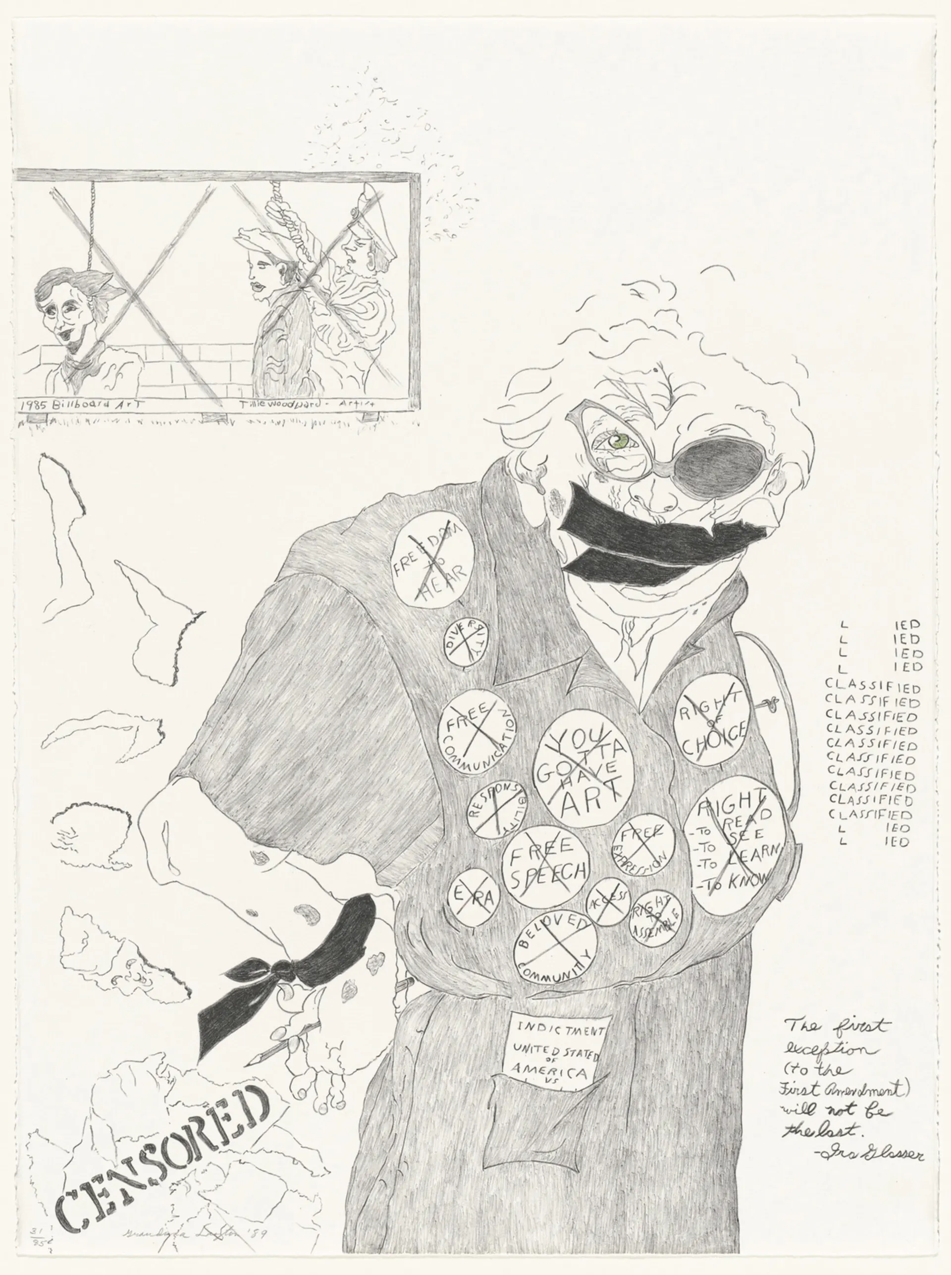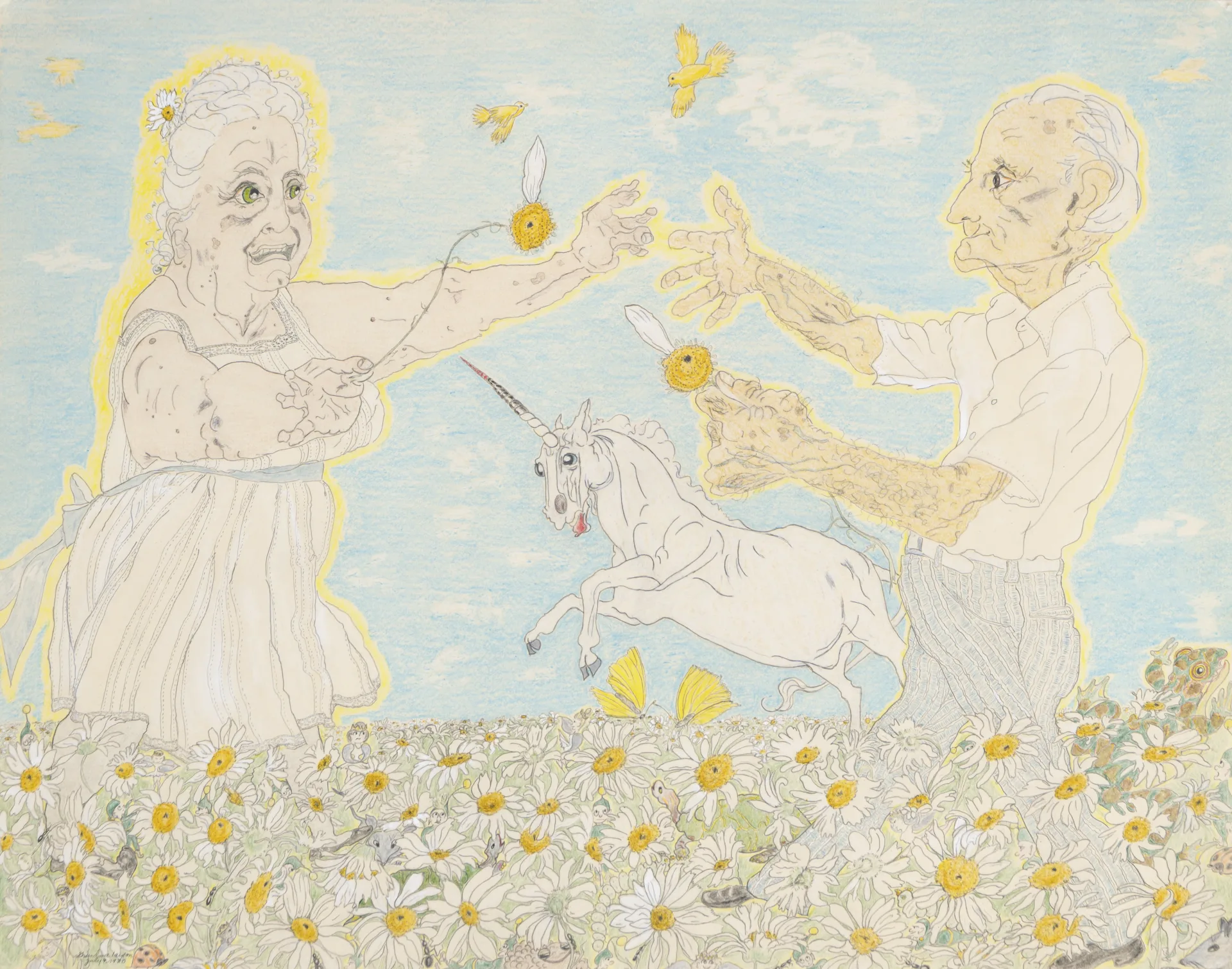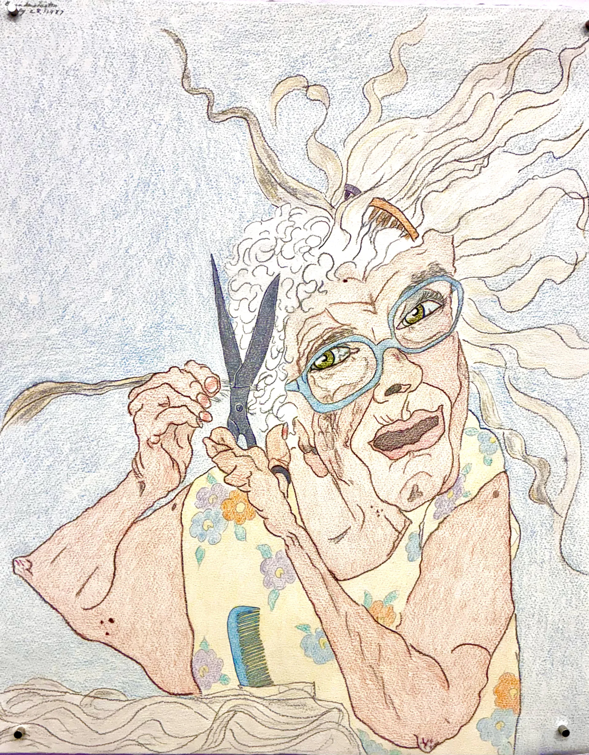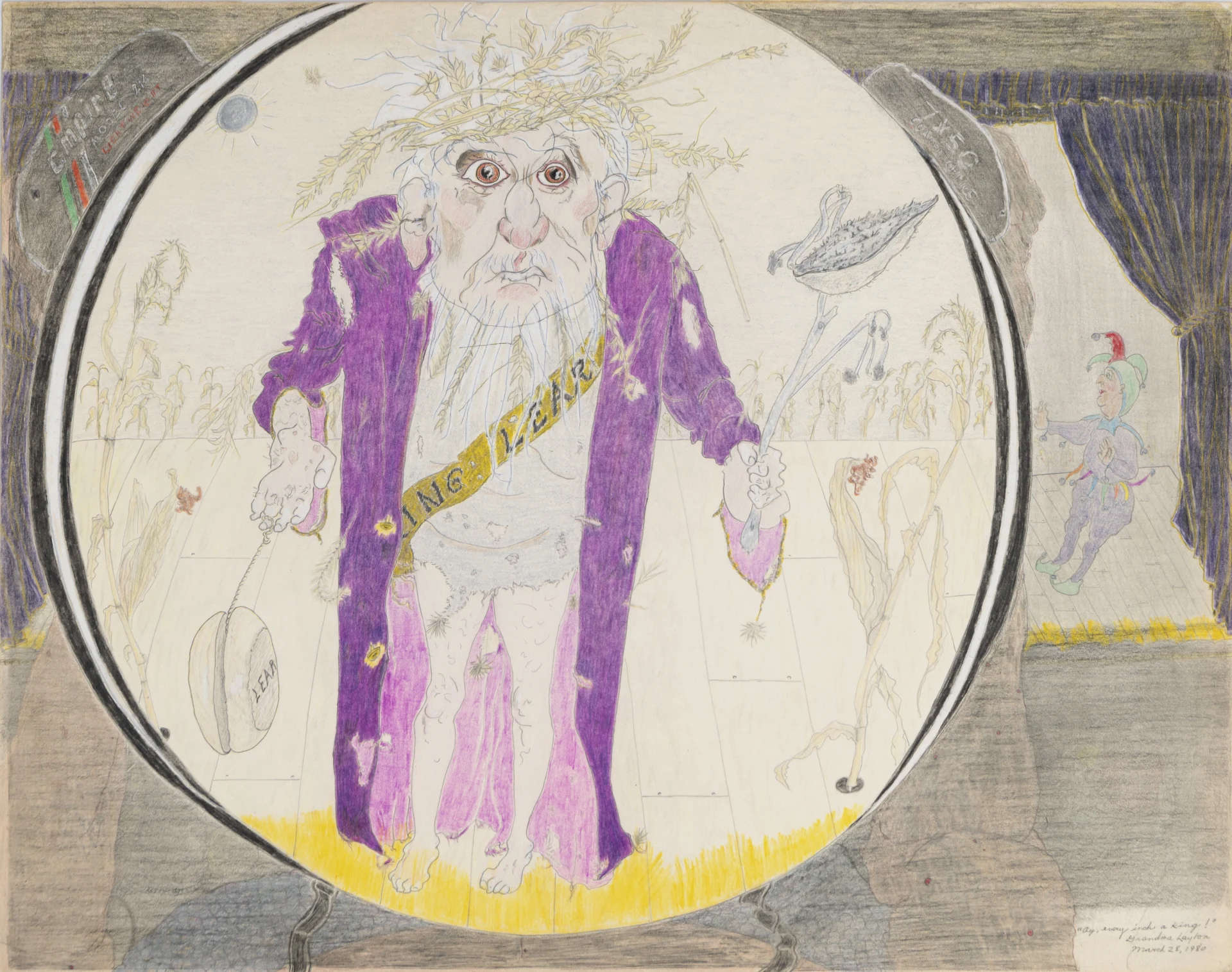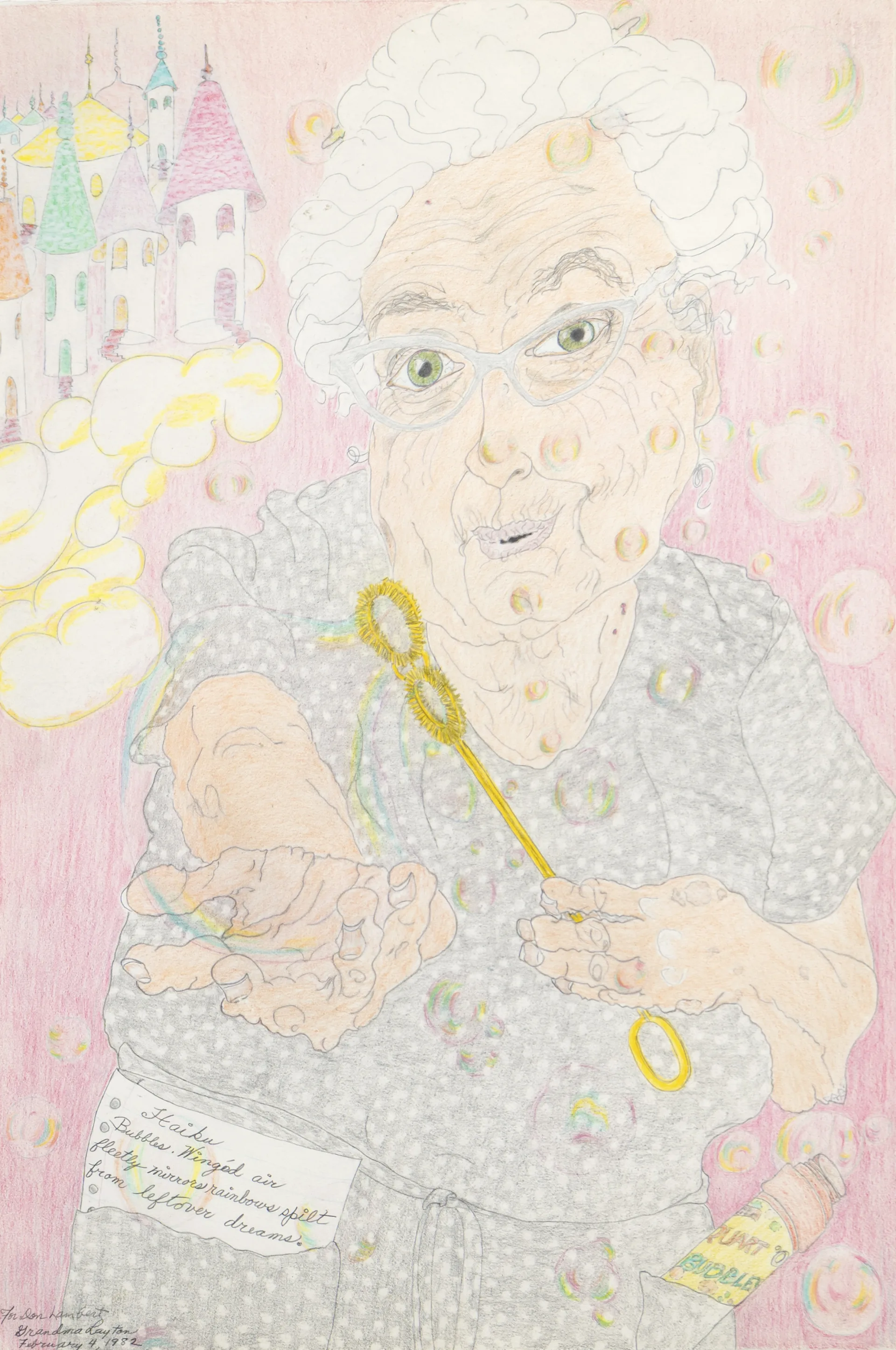 Layton wasn't some quaint outsider. She was politically sharp, painfully honest, and emotionally fearless. She picked up colored pencils in her sixties, thanks to her sister, during a time of deep sorrow. Her drawings are bold and unsparing—she sketched herself old, grieving, angry, joyful, suicidal, sexual. Sometimes she's alive, sometimes she's not. She took on racism, misogyny, the death penalty, aging—always with a matter-of-fact boldness that cut through the nonsense.