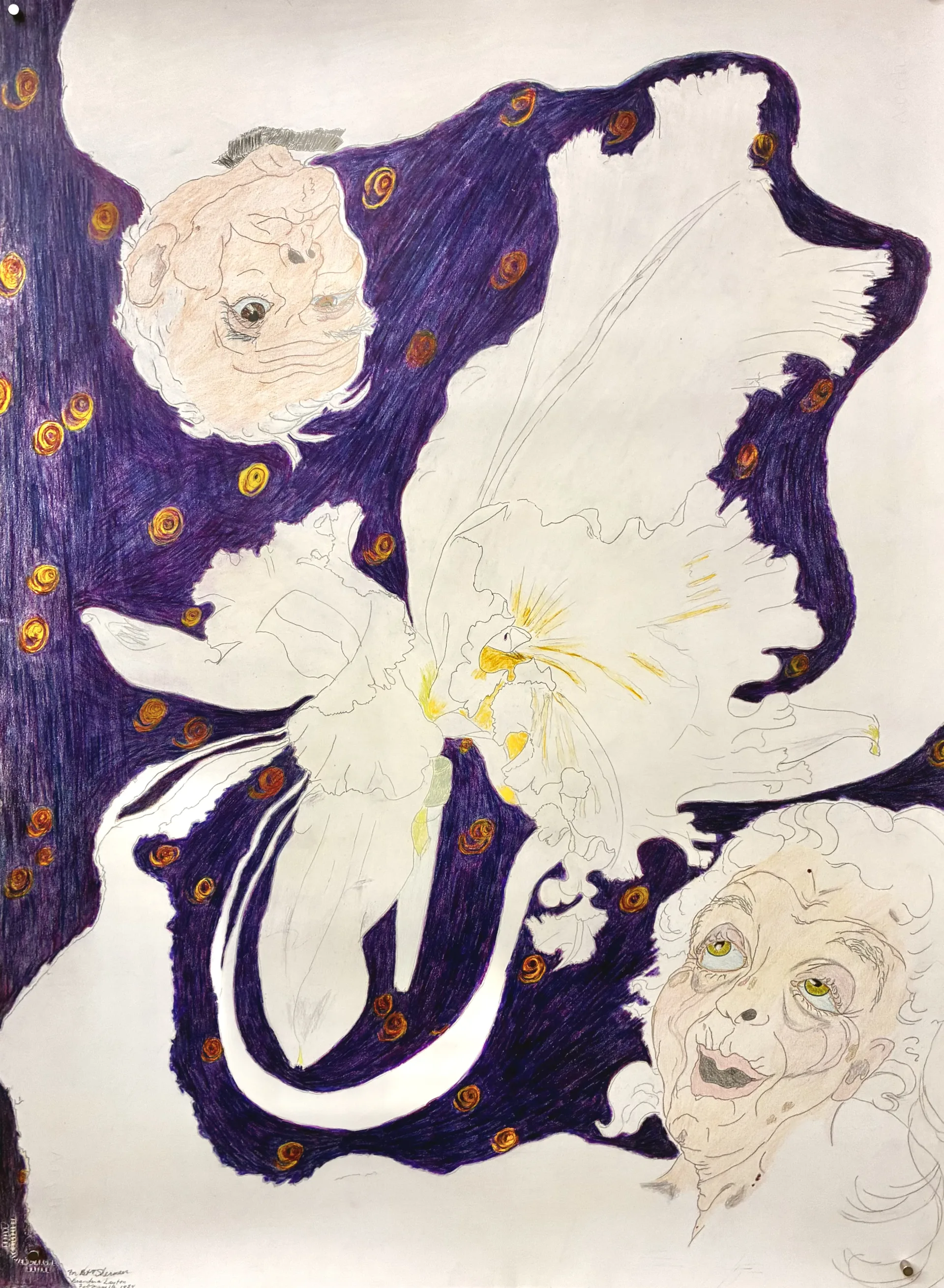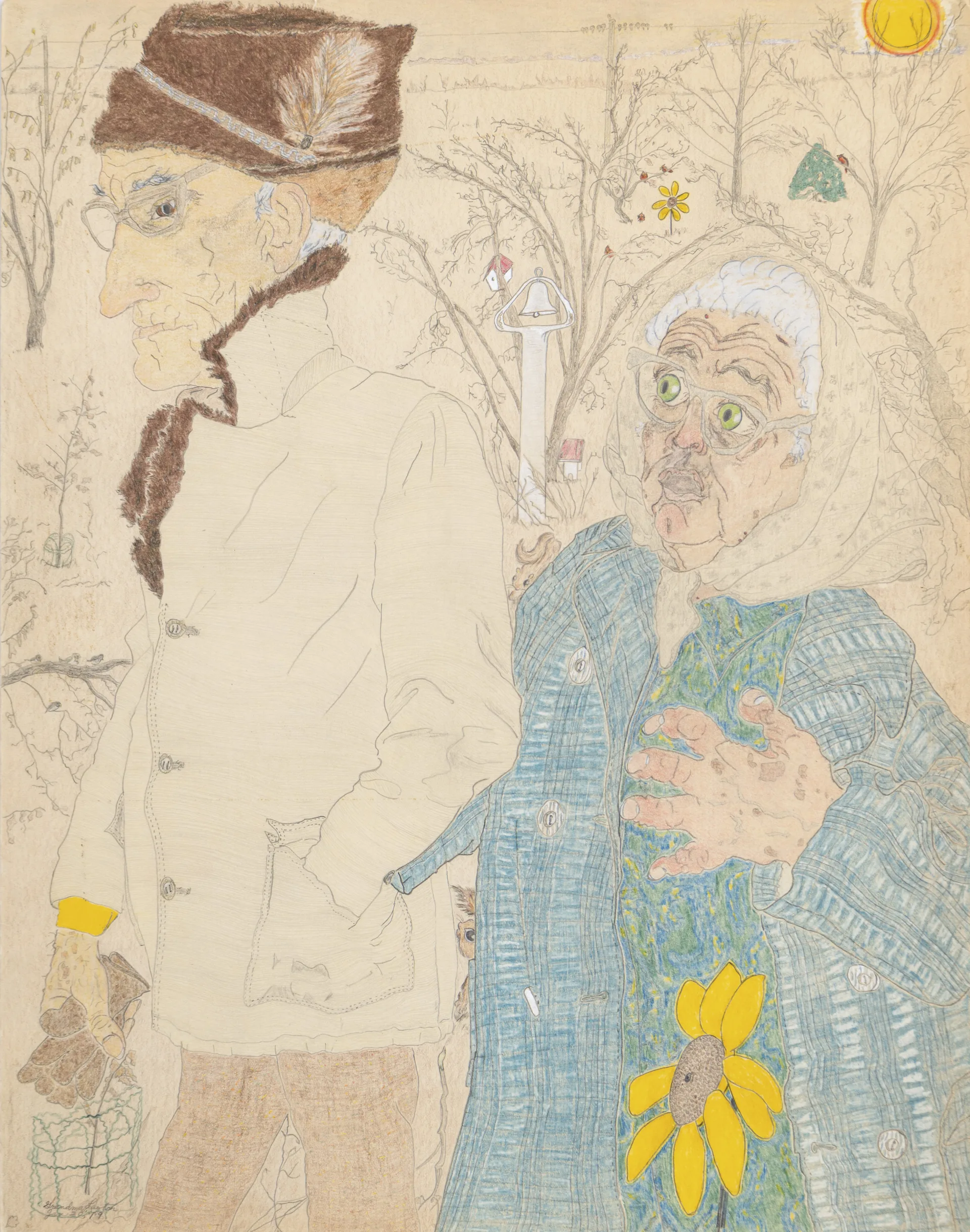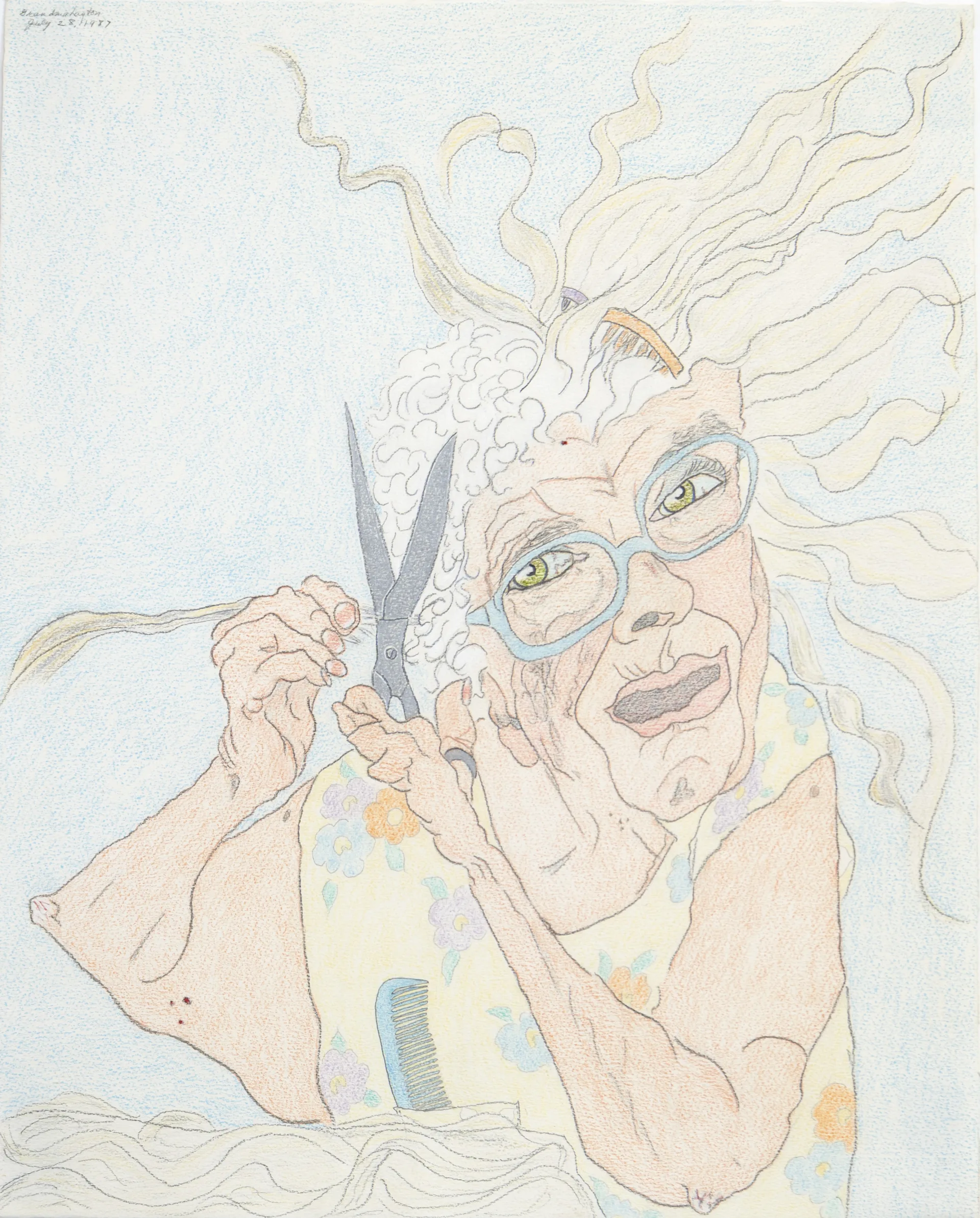 Elizabeth "Grandma" Layton (1909–1993), was an artist from rural Kansas who began her drawing practice in 1977 at 68 years old, after a suggestion from her sister to pick up a creative practice. With her unique hand, line, and treatment of space in her work, she fine-tuned her craft through repetitive contour line drawing. This process enabled her to express her deepest thoughts and feelings about her personal life, relationships, body, identity, age, memories, and experiences; as well as her liberal socio/political leanings concerning sexism, racism, ageism, gay rights, censorship, and the well-being of the mentally ill, disabled, poor, and oppressed. All topics that are still relevant and at the forefront today. In doing so, she claimed that her art making practice cured her of her lifelong debilitating depression, a feat that no medication or shock treatment she had previously received ever had.