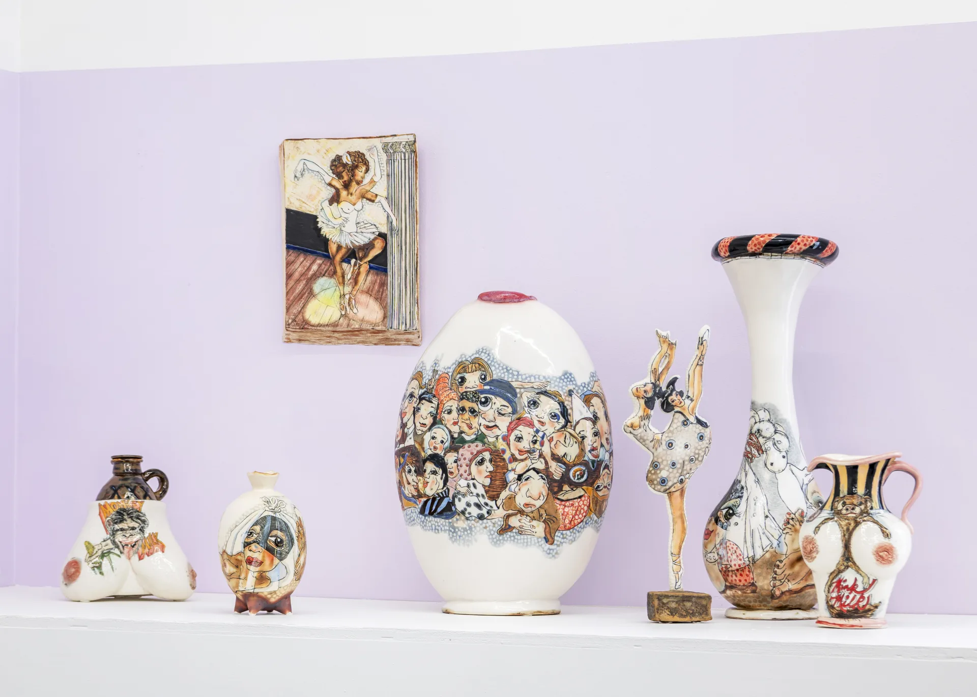 At first glance the pairing seems unlikely: Elizabeth "Grandma" Layton, the Kansas artist whose flinty continuous-line drawings became a late-life act of clarity, and Skuja Braden, the Latvia/California duo who build porcelain vessels and figures, then paint them as if paper were curved into air. But the wager here is that line — the simplest instrument — can travel between mediums without losing its intelligence. Read more